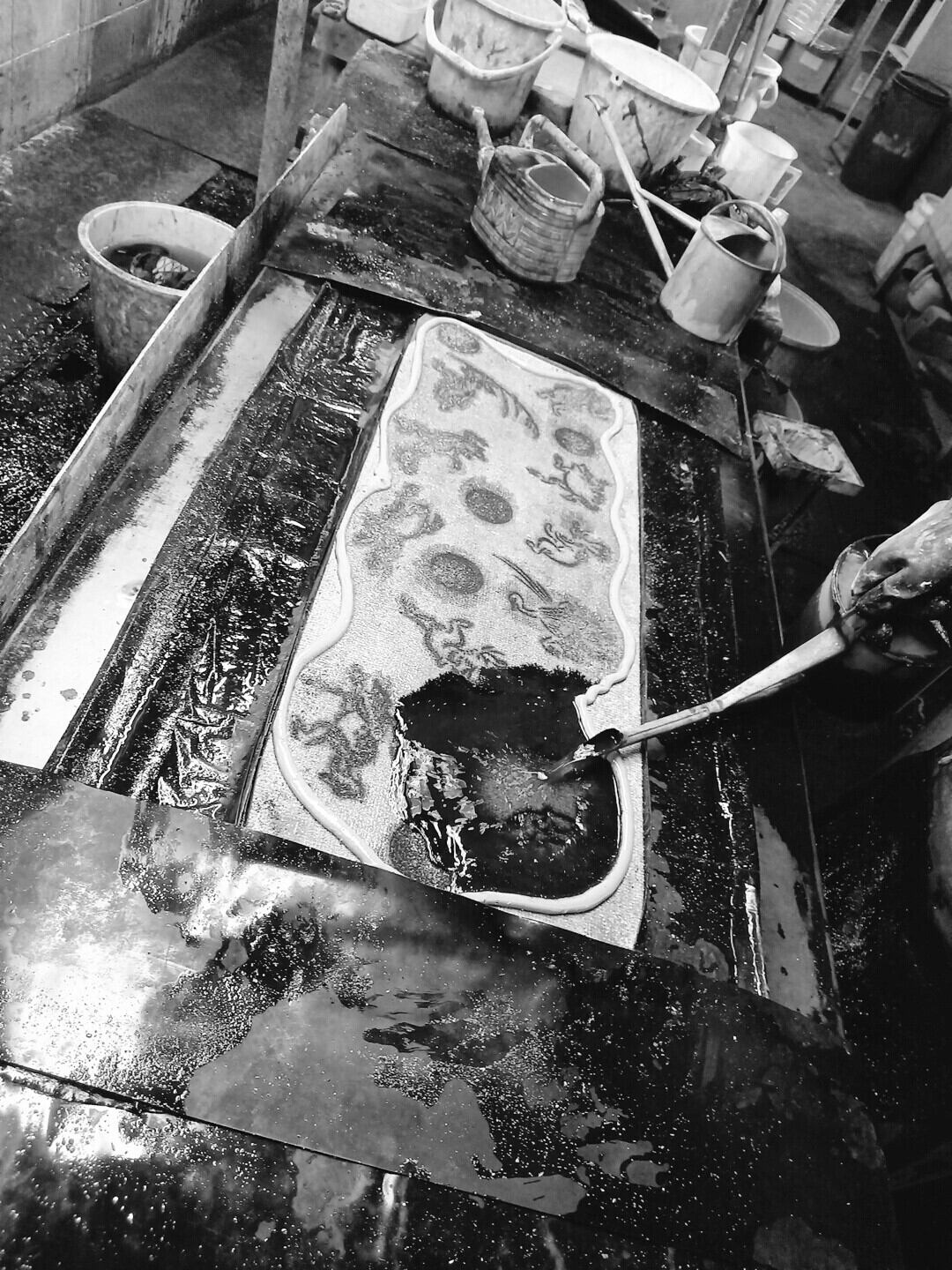 (※商品画像の後の画像5枚は、濱いち屋の魚河岸シャツの生地反物を手作業で染めている注染の染色工程紹介画像になります)