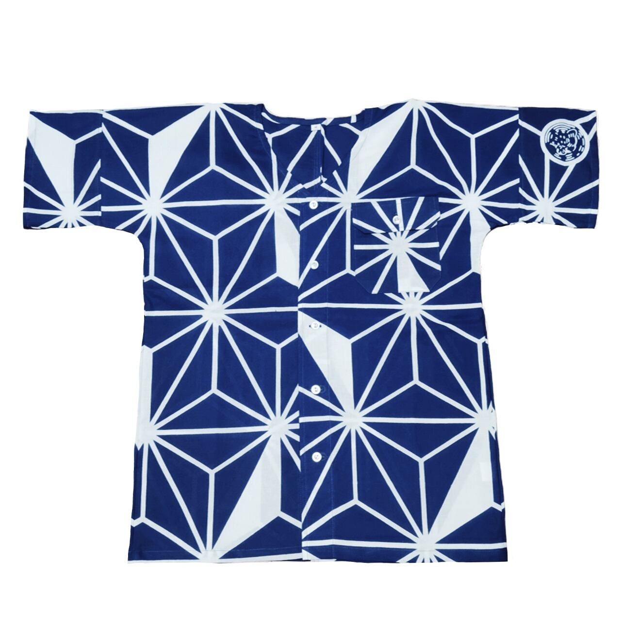 ①麻かざぐるま・・・大柄の麻の葉文様に白と藍色のコントラストが美しい魚河岸シャツ
