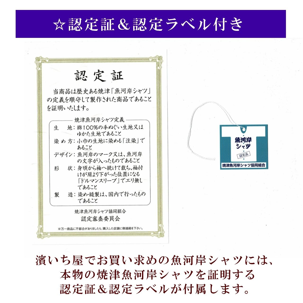 ☆当店でお買い求めの魚河岸シャツには、本物の魚河岸シャツを証明する認定証&認定ラベルが付属します。