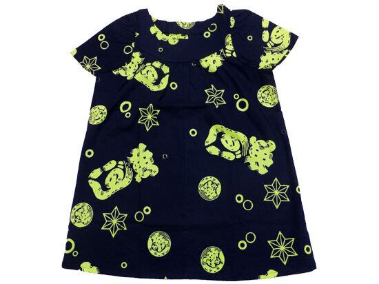 本染め魚河岸チュニック フリーサイズ 浴衣生地 涼麻柄 紺×ライム 日本製 注染そめ 木綿 職人の仕立てチュニック 焼津 浜通り 港町