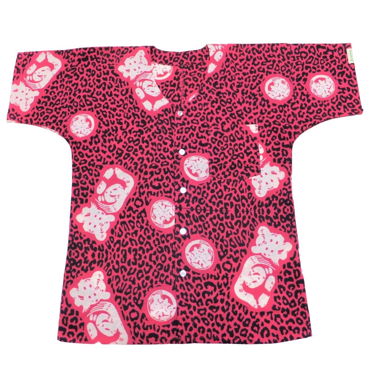 本染め魚河岸シャツ Lサイズ 認定証付き 木綿晒 ヒョウ柄 ネオンピンク 日本製 注染そめ 浴衣生地 アニマル柄 職人の仕立てシャツ てぬぐいシャツ 濱いちシャツ 焼津 浜通り 港町