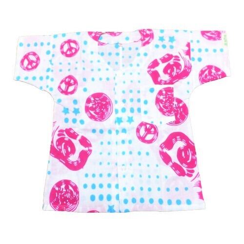 本染め魚河岸シャツ キッズ用100サイズ 認定証付き 木綿晒 星柄入り豆絞り 白×水色&ピンク 子供用 日本製 注染そめ 浴衣生地 ピースマーク 職人の仕立てシャツ てぬぐいシャツ 濱いちシャツ 焼津 浜通り 港町