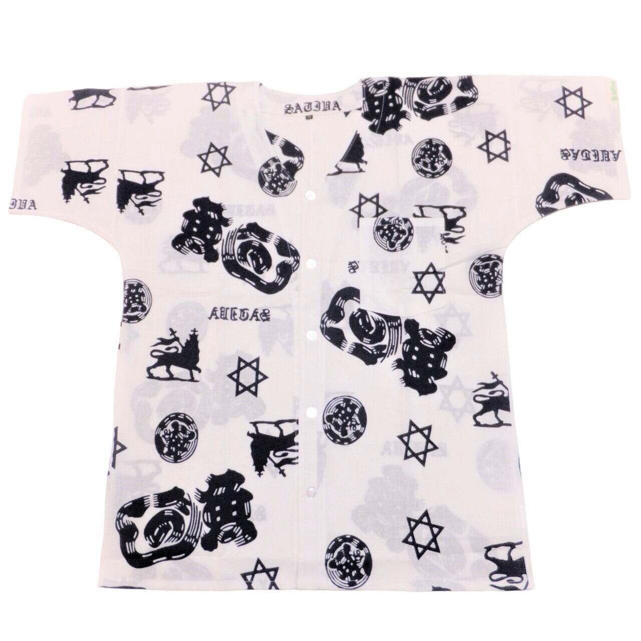 本染め魚河岸シャツ LLサイズ 認定証付き 木綿晒 籠目紋&獅子柄 白×紺 日本製 注染そめ 浴衣生地 六芒星 職人の仕立てシャツ てぬぐいシャツ 濱いちシャツ 焼津 浜通り 港町