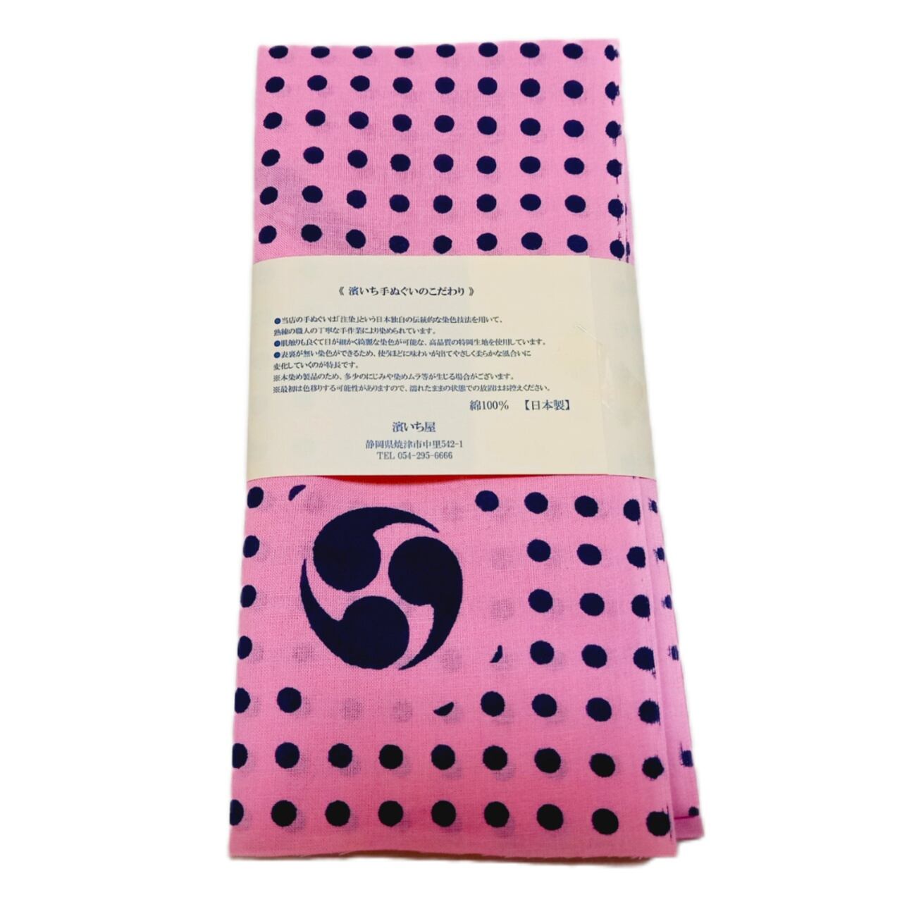 濱いち手ぬぐい 注染 伝統魚河岸豆絞り ピンク×紺 伝統染色技法 特岡 綿100% 浴衣生地 本染め 日本てぬぐい 魚河岸 和柄