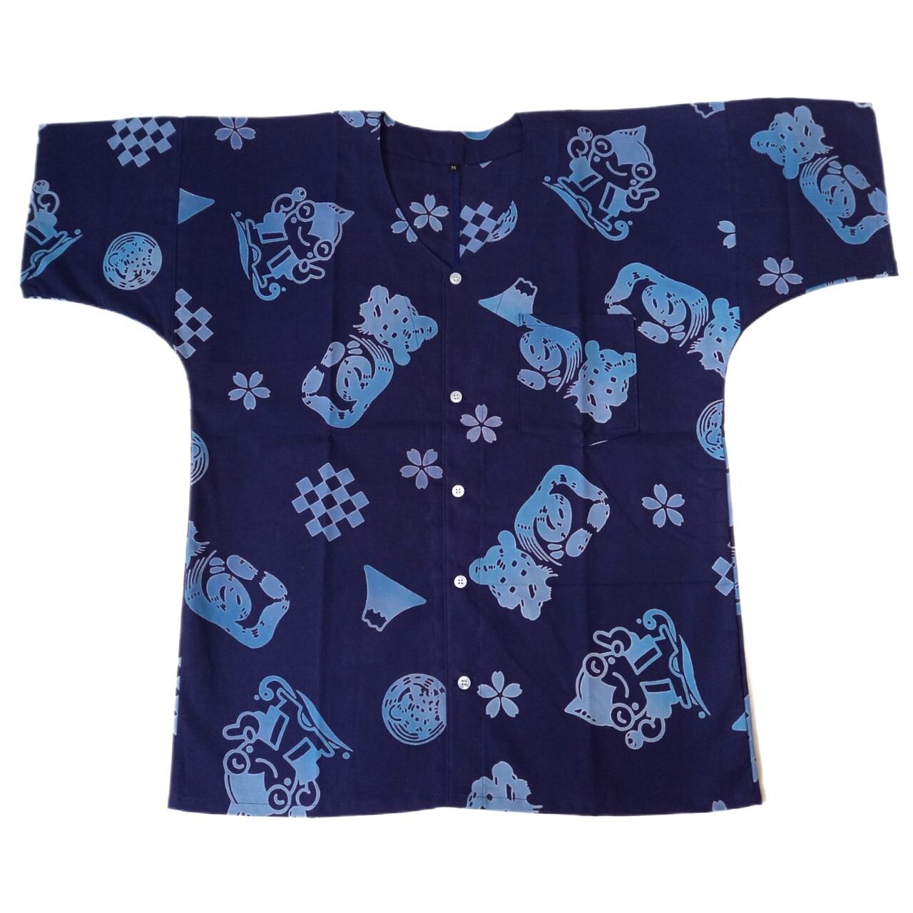 本染め魚河岸シャツ Mサイズ 認定証付き 木綿晒 やいちゃん柄 アースカラータイプ 紺 桜 富士山 市松模様 日本製 注染そめ 浴衣生地 職人の仕立てシャツ てぬぐいシャツ 濱いちシャツ 焼津 浜通り 港町